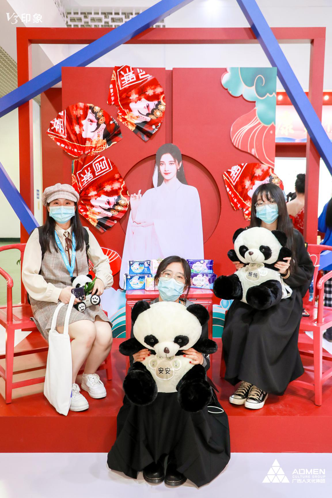 德扑之星集团展位的正红布景极具特色,吸引了众多国风爱好者前来打卡,不少汉服小仙女都被熊猫玩偶萌翻了,纷纷合影留念。